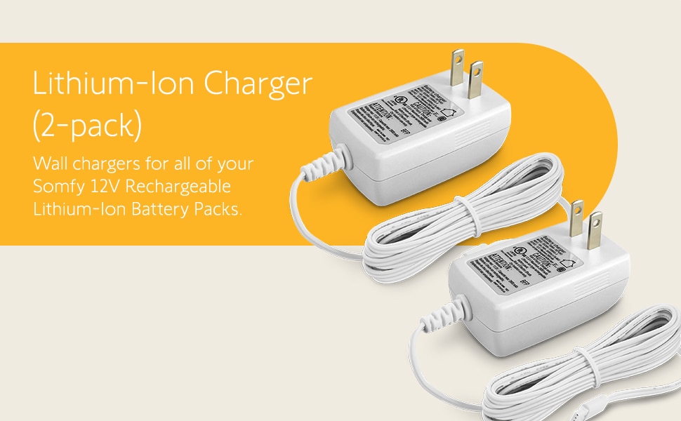 Experience the convenience and efficiency of our Lithium-Ion Charger with 6' Cable, now available in a 2-pack. Designed for reliability and performance, these chargers ensure your Somfy motors and devices stay powered and ready to use. With two chargers included, you can effortlessly charge multiple shades simultaneously, maximizing convenience and efficiency.